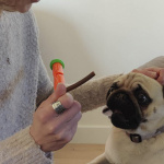 Donner une friandise au chien (ex : dans la main ou avec une pince)
